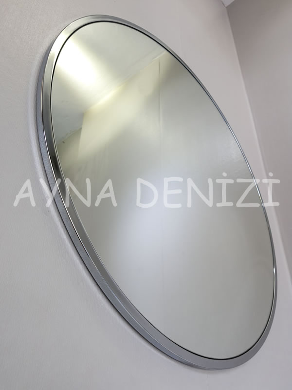 - Dekoratif Modern Tasarım 1.Sınıf Kalitede Platin Gümüş Renk Metal Çerçeveli Yuvarlak Dairesel Dekoratif Ayna
