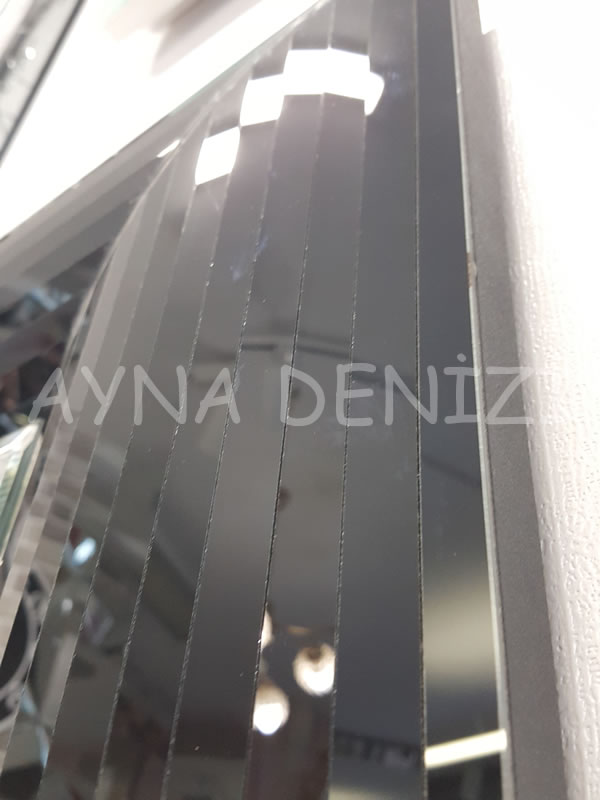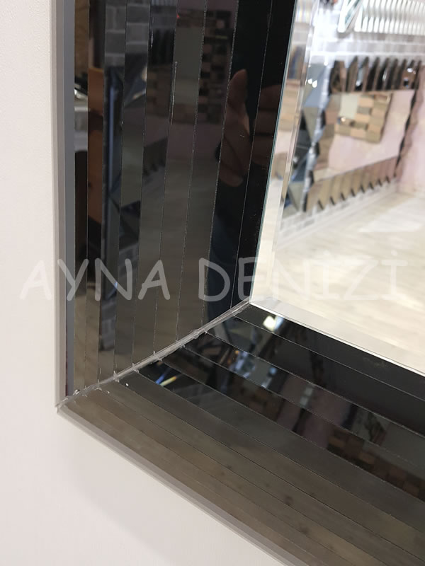 Çizgi Small Black model modern ayna modeli, modern ayna dediğimiz grup içerisinde yer alır. Mdf ve ahşap üzerine, belirli kesim yöntemleri (normal, cnc) kullanılarak ortaya çıkarılan belirli ebatlarda kesimi yapılmış camların, kasa yapısı daha önceden oluşturulmuş, istenen renkte (beyaz, siyah vb.) boyanmış çerçeveye yapıştırılarak uygulanması sonucu bu model ortaya çıkarılmıştır. Şerit şeklinde camların çubuk şeklinde kesilmesi ve bunların çerçeve etrafına sıra halinde düzenli olarak yerleştirilmesi ile bu model ortaya çıkarılmıştır. Bombeli bir model olup, ayna etrafı inişli çıkışlı şeklindedir. Diğer ayna modellerinde olduğu gibi tek tek el işçiliği ile titizlikle üretilir. Farklı ayna, cam ve çerçeve renklerinde üretimi yapılabilir.