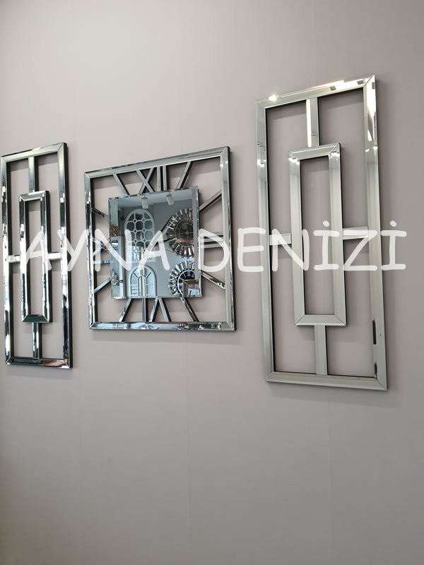 Aynı zamanda niş set takım içerisinde bulunan aynalı saat nedeniyle aynalı saatli niş takımı olarak da bilinmektedir. Belirli ölçülerde cnc kesimi yapılmış mdf kasa üzerine, 4 mm flotal aynalı sayılarının ortaya çıkartılması sağlanarak, üzerine birebir ölçüleri denk gelecek şekilde yapıştırılması ile üretilmiştir. Birçok aynalı saat modelleri için bizlere ulaşabilir, aynalı saat fiyatları için detaylı bilgi alabilirsiniz. Akrep ve yelkovanın tam bir uyum içerisinde durması sağlanmıştır. Saat mekanizması 1.sınıf olup, mekanizma dediğimiz kısım dünya standartlarında olup, herhangi bir sapma veya geri kalma durumu olmaz. Belirli kesim yöntemleri (normal, cnc) kullanılarak ortaya çıkarılan aynaların, kasa yapısı daha önceden oluşturulmuş, istenen renkte boyanmış çerçeveye, mdf ahşap üzerine montajlanması sonucu bu model ortaya çıkarılmıştır.