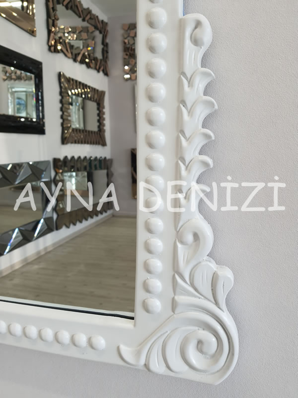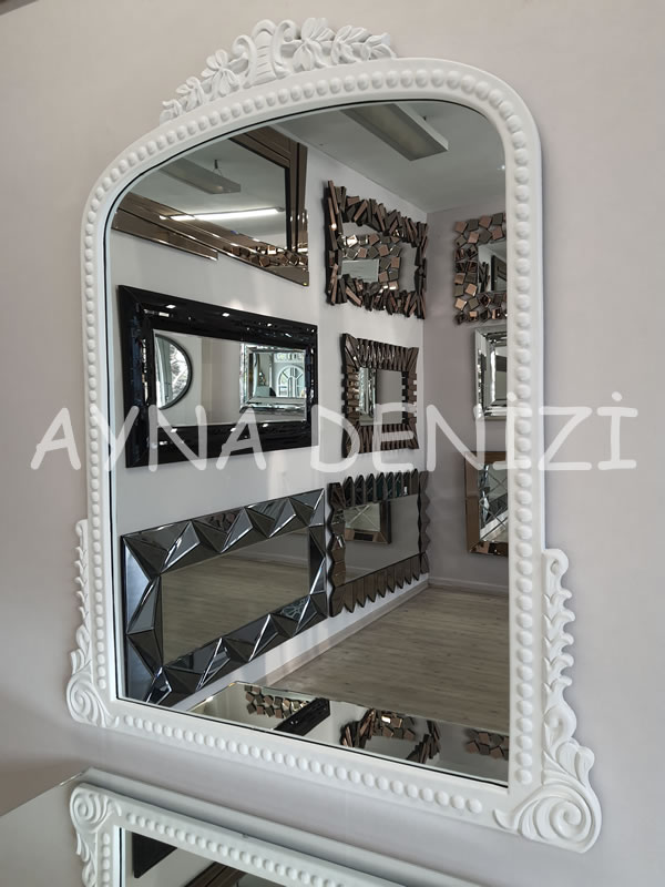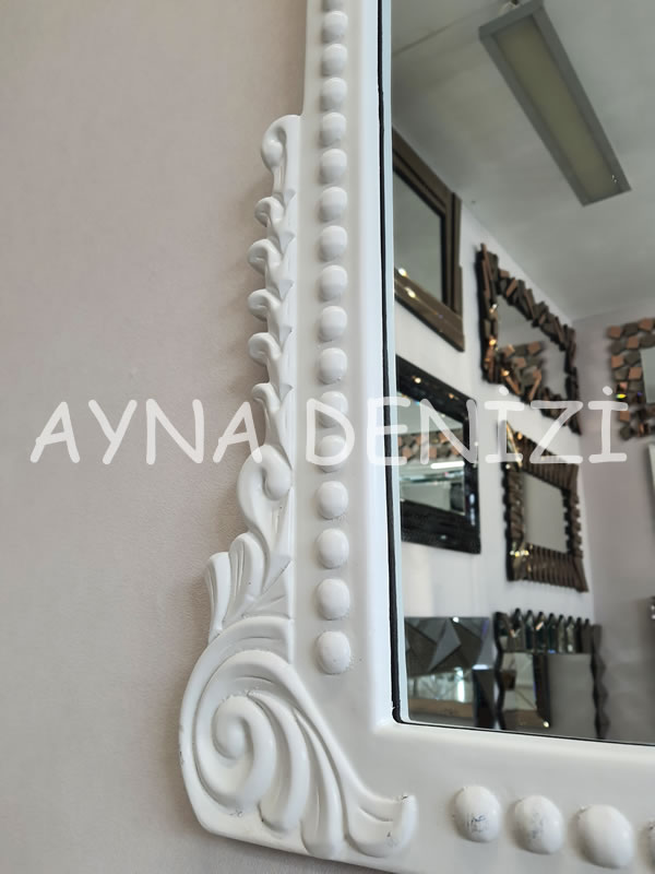 Lady model beyaz renk dekoratif ayna, çeşitli ayna ve çerçeve renkleri, farklı ölçüleri, yaygın kullanım alanları, şık tasarımı, uygun fiyatları ile satışı yapılır.