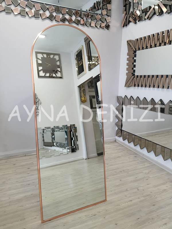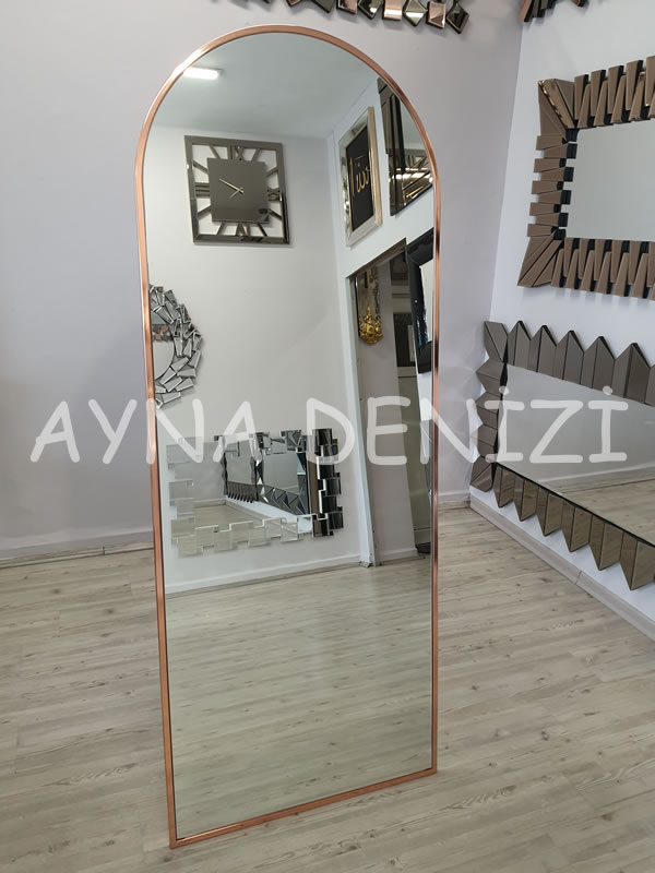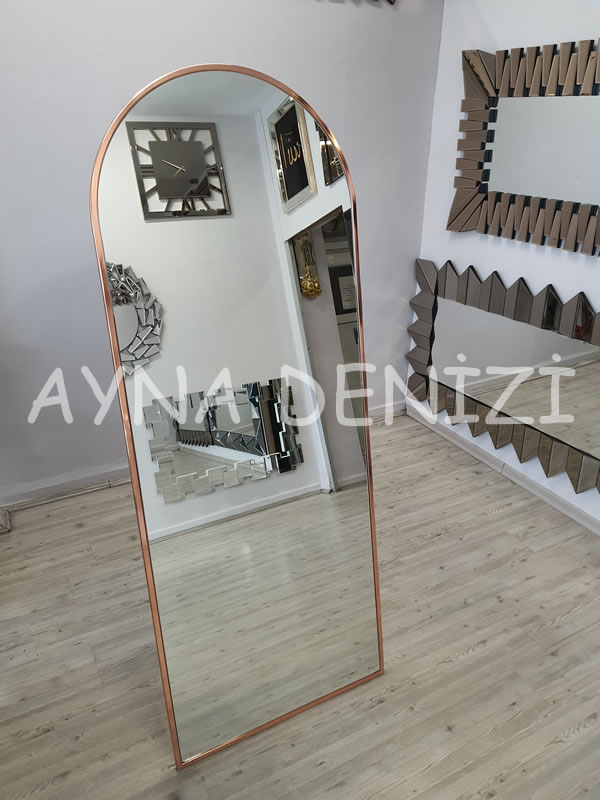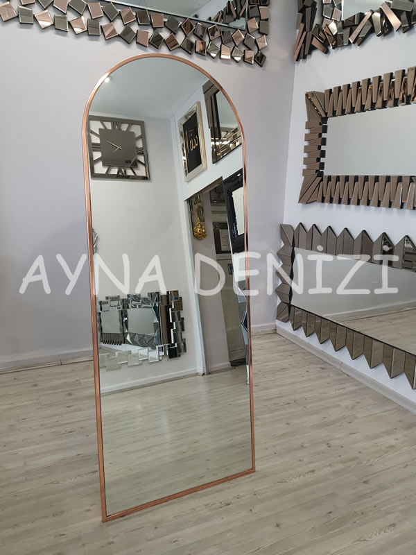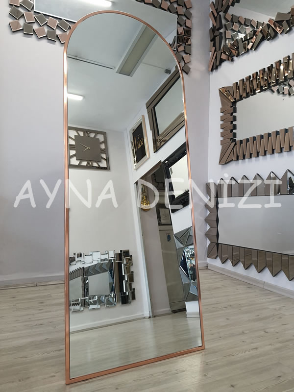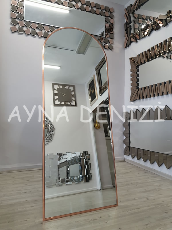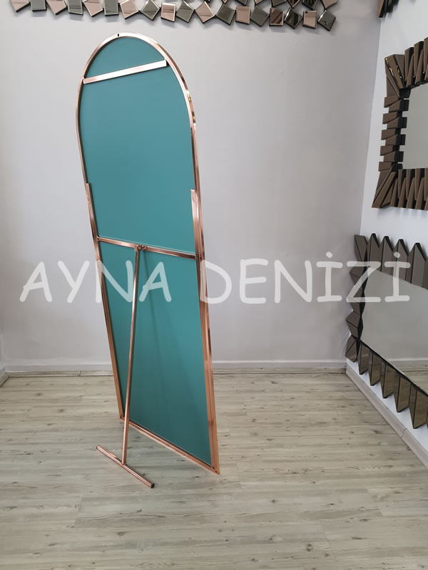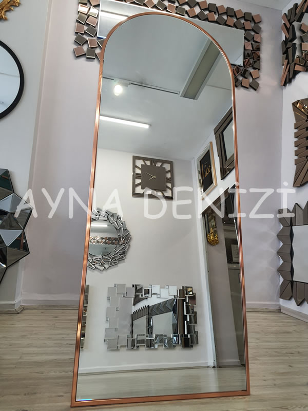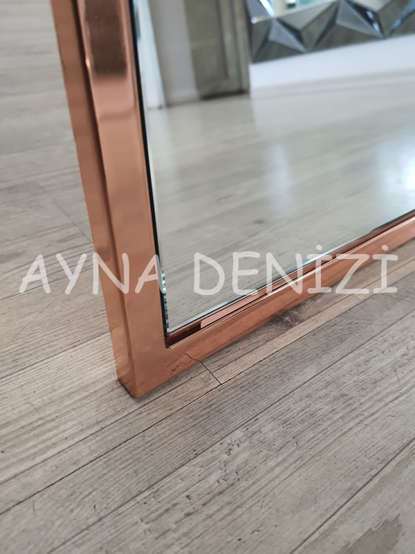Matilda Luxury model rose gold altın renk metal çerçeveli ayaklı boy aynası modeli, boy aynası dediğimiz grup içerisinde yer alır. Metal çerçeveli boy aynaları arasında tasarımsal olarak en çok tercih edilen ve modası hiçbir zaman geçmeyecek tasarımlar arasında yer almaktadır. Ölçülendirme boy ve en birbiriyle uyumlu olacak şekilde ölçülendirilerek üretilmektedir. Özenli bir şekilde tasarlanıp, boy aynası olarak kullanılmak için üretilir. Tüm ölçüler mükemmel bir uyuma sahip olup, en ve boy birbiri ile tam bir uyum içerisindedir. Metal çerçeveli boy aynası modelleri ve çeşitleri arasında tercih olarak sağlamlık, estetik, incelik ve zarifliğe sahiptir. Tasarım ve estetiğin tam bir uyumuna sahiptir. Tasarımsal olarak bu incelik bu modelin farklı alanlarda farklı amaçlarda kullanılmasını sağlamaktadır.