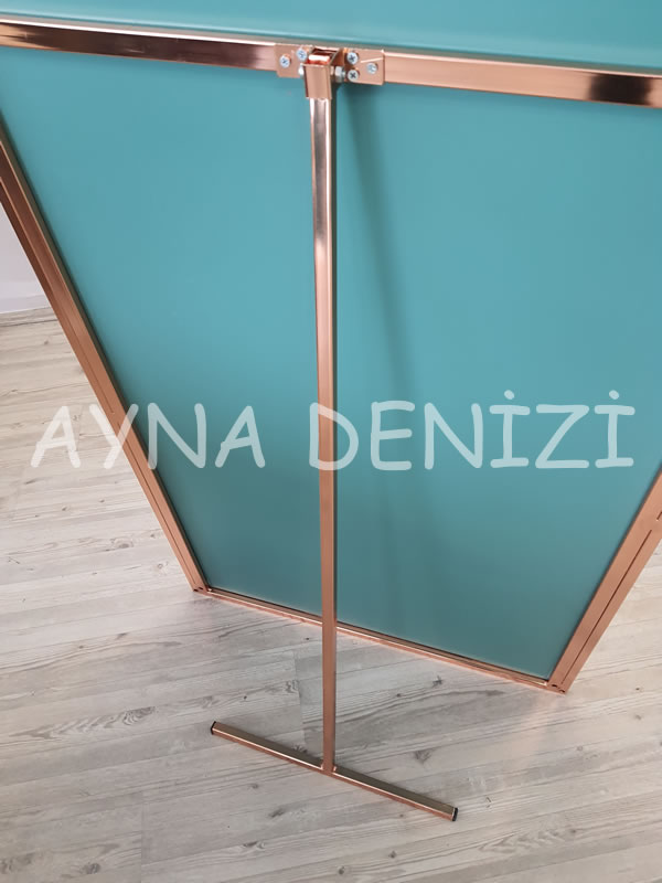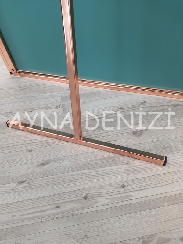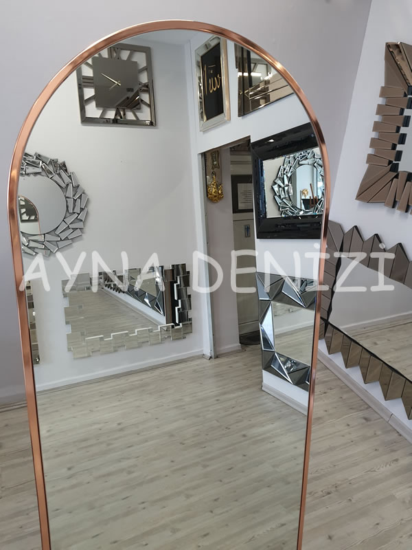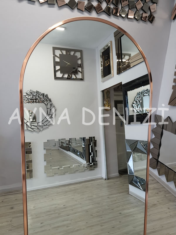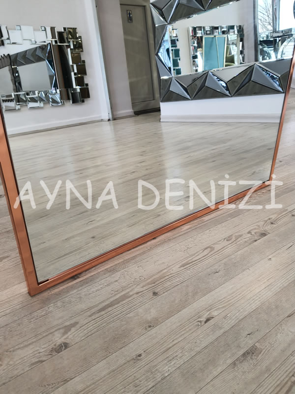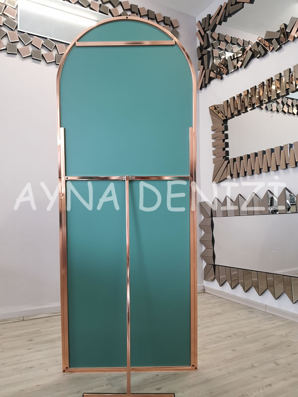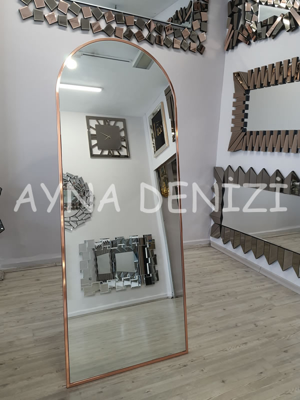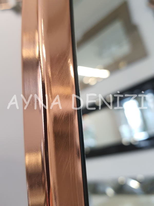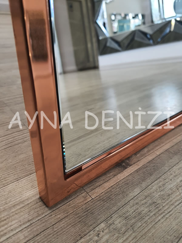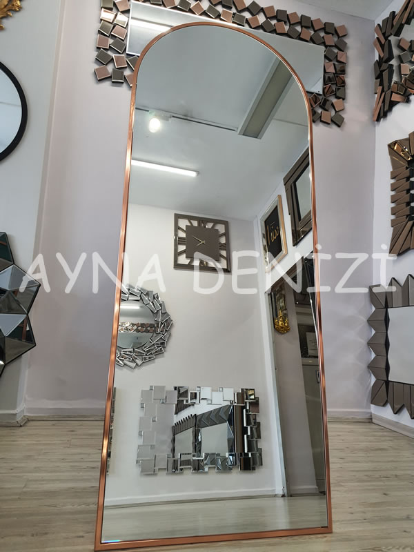 Matilda Luxury model rose gold altın renk metal çerçeveli ayaklı boy aynası modeli, boy aynası dediğimiz grup içerisinde yer alır. Metal çerçeveli boy aynaları arasında tasarımsal olarak en çok tercih edilen ve modası hiçbir zaman geçmeyecek tasarımlar arasında yer almaktadır. Ölçülendirme boy ve en birbiriyle uyumlu olacak şekilde ölçülendirilerek üretilmektedir. Özenli bir şekilde tasarlanıp, boy aynası olarak kullanılmak için üretilir. Tüm ölçüler mükemmel bir uyuma sahip olup, en ve boy birbiri ile tam bir uyum içerisindedir. Metal çerçeveli boy aynası modelleri ve çeşitleri arasında tercih olarak sağlamlık, estetik, incelik ve zarifliğe sahiptir. Tasarım ve estetiğin tam bir uyumuna sahiptir. Tasarımsal olarak bu incelik bu modelin farklı alanlarda farklı amaçlarda kullanılmasını sağlamaktadır.