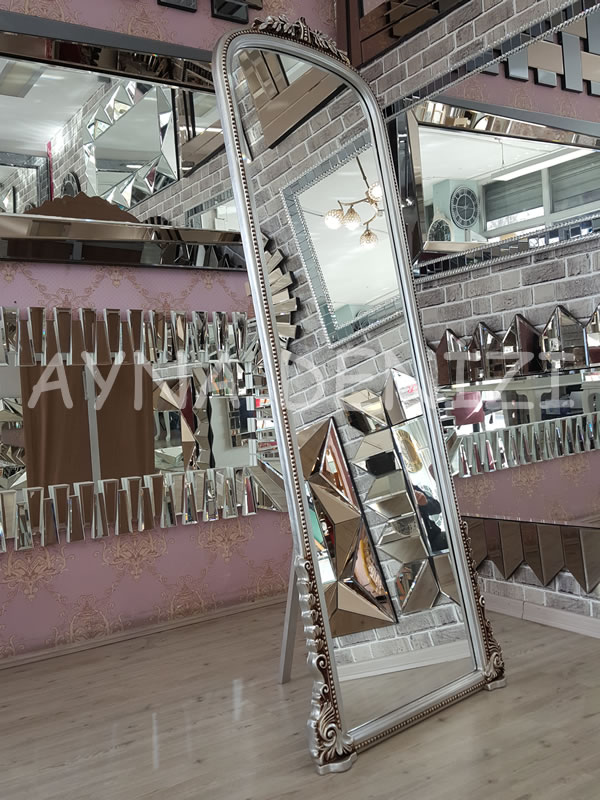 Matmazel model gümüş renk ayaklı boy aynası, çeşitli ayna ve çerçeve renkleri, takı, makyaj, boy aynası olarak yaygın kullanım alanları, uygun fiyatları ile satışı yapılır.