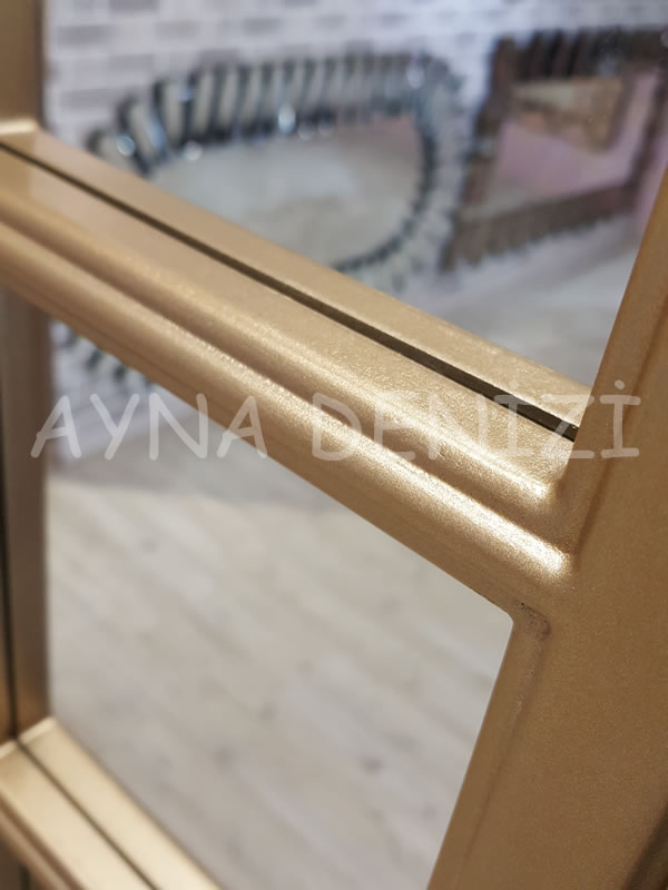 Padova model altın renk dekoratif pencere ayna modeli, pencereli ayna dediğimiz grup içerisinde yer alır. Bu model aynı zamanda pencere şeklinde tasarımlardan esinlenerek üretilmiştir. Bu model farklı tasarımsal bir ayna olup, farklı bir model olarak evinize ve diğer mekanlara ayrı bir hava getirmektedir. Dekoratif ayna modelleri arasında aradığınız bir olabilir, vintage bir tasarım yansıtabilirsiniz. Ahşap dediğimiz mdf kasanın tasarımı daha önceden ortaya çıkarılmış bir modelin profesyonel olarak kesimi ile ortaya çıkarılmıştır. Bu model country, vintage, avangard, spor model mobilyalar olmak üzere tüm mobilya çeşitlerine ve modellerine mükemmel bir uyum sağlayacak şekilde tasarlanmıştır. Bu model şeffaf renk aynaların mdf veya ahşap üzerine, belirli kesim yöntemleri (normal, cnc) kullanılarak ortaya çıkarılması ve uygulanması ile yapılır.