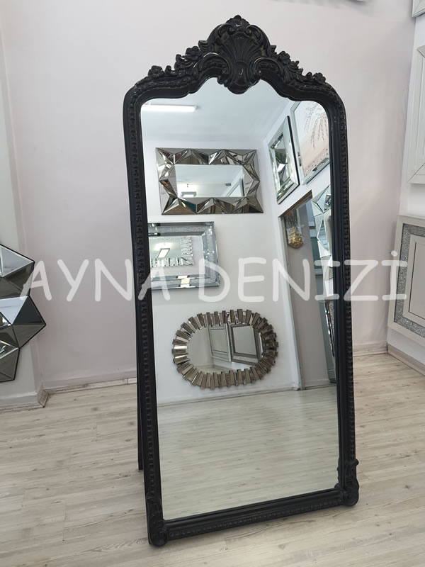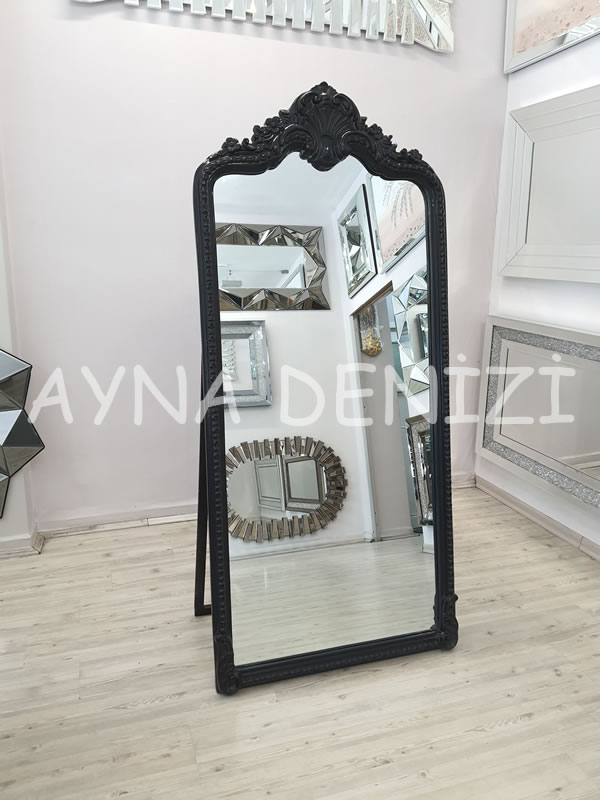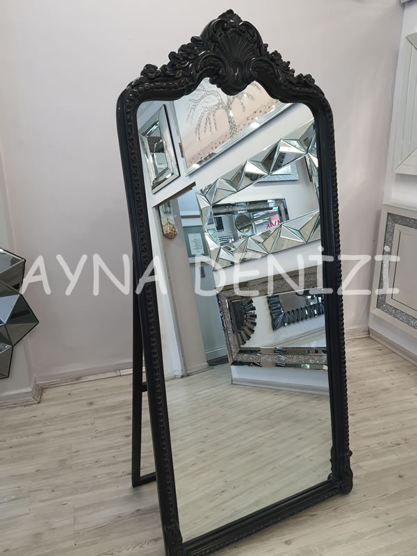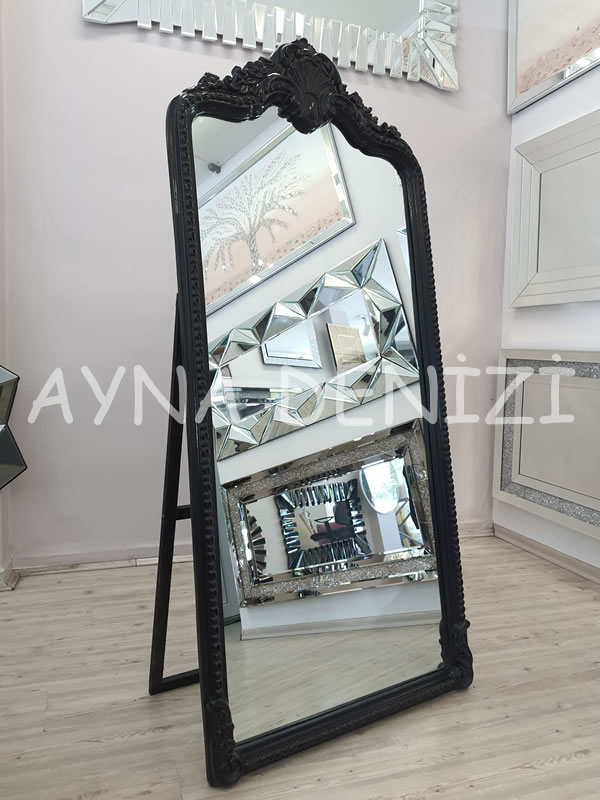 Princess Black model siyah renk ayaklı boy aynası, çeşitli ayna ve çerçeve renkleri, boy, dekoratif ve makyaj aynası olarak yaygın kullanım alanları, uygun fiyatları ile satışı yapılır.