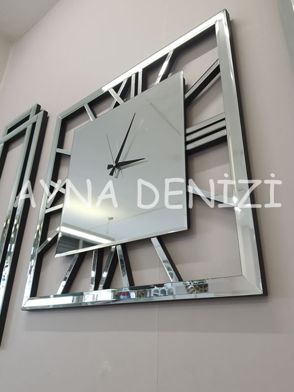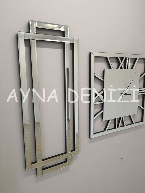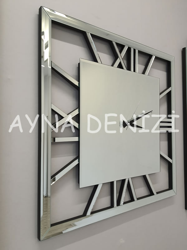 Aynı zamanda niş set takım içerisinde bulunan aynalı saat nedeniyle aynalı saatli niş takımı olarak da bilinmektedir. Belirli ölçüde cnc kesimi yapılmış mdf kasa üzerine, 4 mm flotal aynalı sayılarının ortaya çıkartılması sağlanarak, üzerine birebir ölçüleri denk gelecek şekilde yapıştırılması ile üretilmiştir. Birçok aynalı saat modelleri için bizlere ulaşabilir, aynalı saat fiyatları için detaylı bilgi alabilirsiniz. Akrep ve yelkovanın tam bir uyum içerisinde durması sağlanmıştır. Saat mekanizması 1.sınıf olup, mekanizma dediğimiz kısım dünya standartlarında olup, herhangi bir sapma veya geri kalma durumu olmaz. Belirli kesim yöntemleri (normal, cnc) kullanılarak ortaya çıkarılan aynaların, kasa yapısı daha önceden oluşturulmuş, istenen renkte boyanmış çerçeveye, mdf ahşap üzerine montajlanması sonucu bu model ortaya çıkarılmıştır.
