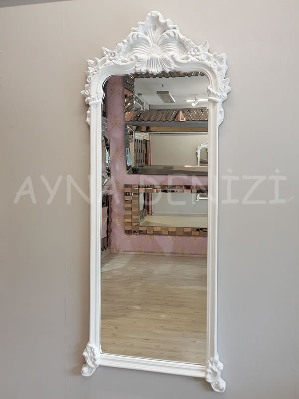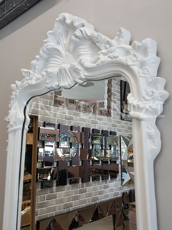 Vintage Madam model beyaz renk boy aynası modeli, boy aynası dediğimiz grup içerisinde yer alır. Boy aynası olarak kullanılmak için özenle tasarlanmıştır. Ayna ideal bir boy aynası ölçüsündedir. Dekoratif desenli boy aynası modeli olarak tasarlanmış olan bu model aynı zamanda varaklı dediğimiz boy aynaları olarak da bilinir. Mükemmel bir tasarım ve estetiğe sahiptir. Zarif ve estetik bir tasarıma sahip olup, farklı alanlarda farklı amaçlarda kullanılabilir.